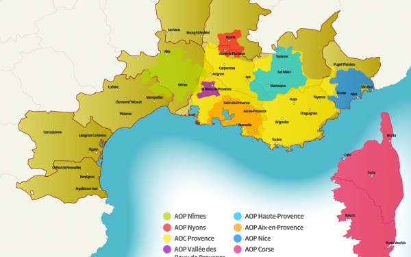 De zuidelijke regio’s van Frankrijk zijn de belangrijkste plekken voor de olijven. De Languedoc-Roussillon heeft het ideale klimaat voor de olijfboom. De grootste en bekendste streek voor olijven is echter de Provence. In Corsica wordt de olijventeelt ook steeds belangrijker. In al deze gebieden zijn de zomers warm en droog en is de grond erg kalkrijk.