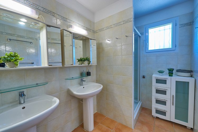 A luxury detached villa with airco (135m²) for six people with a lovely private pool. The villa is tastefully decorated and has a spacious living room with a comfortable seating area with flat screen TV with international channels and Wi-Fi where you can relax pleasantly. The kitchen is also very luxurious, it is fully equipped with a: hob, dishwasher, fridge with freezer, oven, microwave and has a washing machine and dryer in the garage. The master bedroom with two comfortable single box spring beds and ensuite bathroom with bath and / or shower and sink is located on the ground floor. The first floor has two bedrooms with each two single box spring beds. The second bathroom has a bath and/or shower, sink and toilet. The large sliding doors lead to the spacious and covered terrace. The terrace with sunbeds provides you with a view of the private pool which is open from the third week of April until the third week of September. You can watch your children play in the pool or go for a dip yourself.